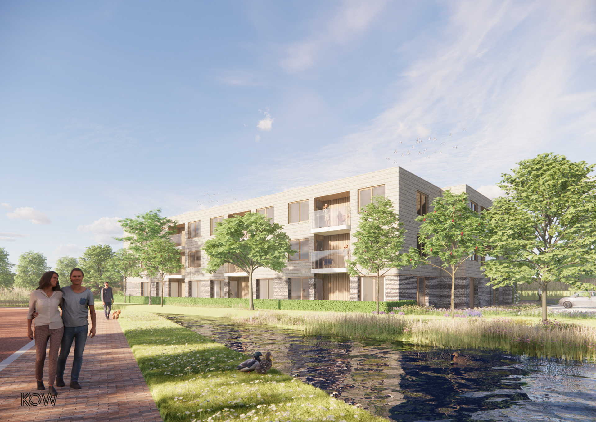 KOW architecten heeft het ontwerp gemaakt voor de appartementen, waarbij oog is voor het wonen in een prettige en klimaatvriendelijke woonomgeving. Het woongebouw krijgt een grote fietsenstalling en in het centrum van het gebouw wordt een gemeenschappelijke groene binnentuin aangelegd. De stijl en de materialen van de appartementen zijn zorgvuldig gekozen: het ontwerp van de appartementen vormen een harmonieus geheel met de koopwoningen in de nieuwe wijk.