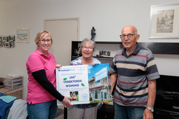 Inmiddels is de 100e woning verbeterd en dit konden we niet stilletjes voorbij laten gaan. Samen met Zwaluwe Bouw hebben we de bewoners van de 100e woning verrast met een insecten hotel. Het cadeau werd goed ontvangen. Deze bewoners nemen actief deel aan de klankbordgroep waardoor ze, ook namens de andere bewoners in de wijk, hebben meegedacht met het plan en de uitvoering. Ze zijn erg blij met hun verbeterde woning!