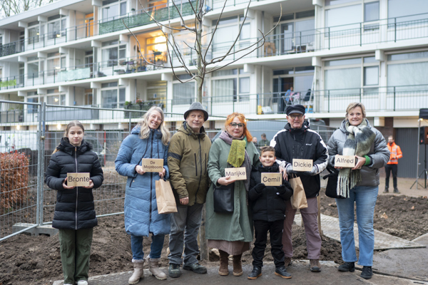 Verschillende buurtbewoners gaven gehoor aan de oproep van Trivire. Woensdag 11 december 2024 ontvingen zij met trots een naambordje die bij ‘hun’ boom wordt geplaatst. Boswachter Jonathan Leeuwis was vanuit Staatsbosbeer aanwezig bij de feestelijke bekendmaking, waar de namen van de bomen werden onthuld. Hij informeerde de aanwezige buurtbewoners over vogels en andere kleine dieren, voor wie de aanwezigheid van bomen in buurten en wijken belangrijk is. Na de bekendmaking van de geselecteerde namen, plantten buurtbewoners met elkaar één van de eerste bomen in de fonkelnieuwe tuin in Sterrenburg. “Door het geven van een naam aan bomen, worden gewone bomen bijzonder voor mensen”, aldus Wieteke Hassing van Trivire.