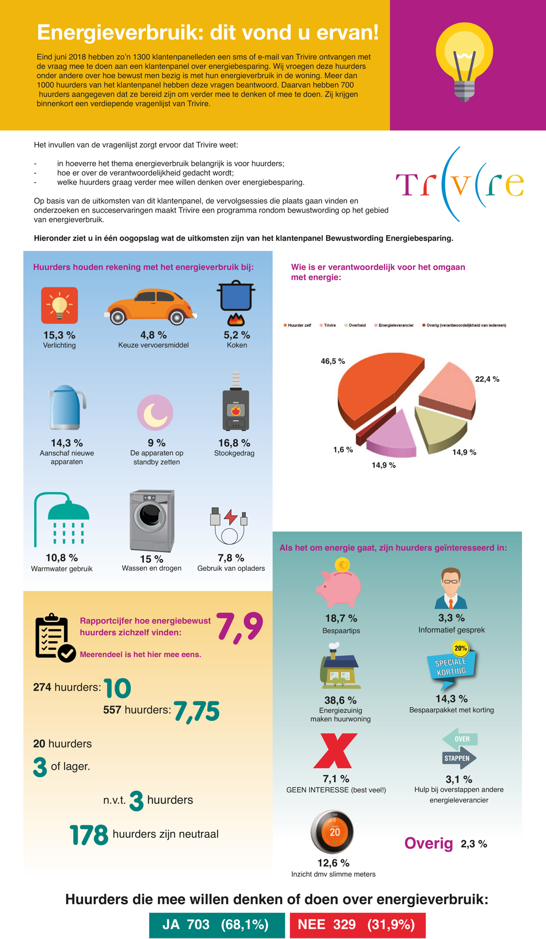 In juni 2018 kreeg ons klantenpanel via een e-mail of sms een aantal vragen over energiebesparing. In een infographic zijn de resultaten van dit onderzoek te zien. We zijn ook erg blij dat een groot deel van ons klantenpanel aangaf verder mee te willen praten en denken over dit onderwerp. Op deze pagina is de infographic te downloaden.