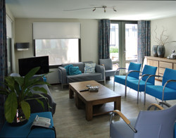 In dit gebouw, dat bestaat uit drie woonlagen, wonen 12 bewoners met een verstandelijke beperking. Zij hebben elk een appartement dat voorzien is van een eigen badkamer en keuken. Dat betekent dat zij onder onze begeleiding redelijk zelfstandig kunnen wonen. Daarnaast is er een gezamenlijke ruimte waar de bewoners elkaar regelmatig treffen. Zo eten we iedere dag met elkaar en wordt er in de woonkamer bijvoorbeeld samen tv gekeken of een spelletje gedaan. Niks is verplicht natuurlijk, we kijken steeds heel erg goed naar de individuele behoefte.