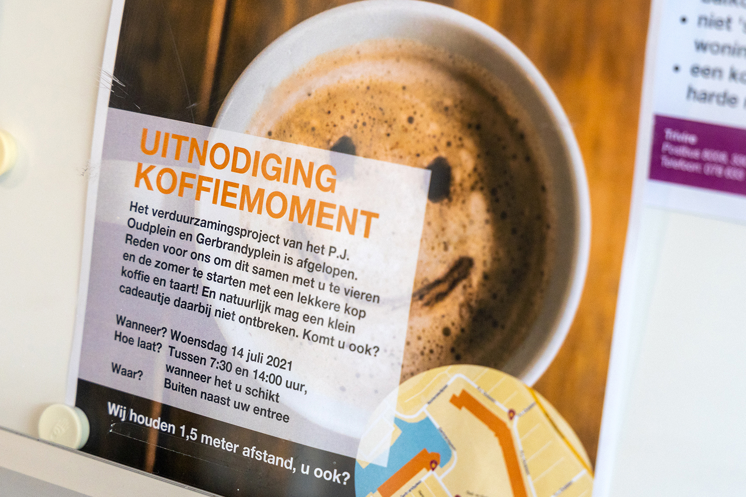 Om het resultaat met elkaar te vieren, deelden medewerkers van Trivire en Team EraFlats mooie planten en energieboxen uit. En de bewoners konden in hun eigen portiek een lekker bakje koffie en een gebakje halen en weer eens gezellig bijkletsen met hun buren. Het was een ontzettend leuke dag vol mooie gesprekken met bewoners. Via deze weg wensen we hen nogmaals veel woonplezier toe in hun vernieuwde (t)huis!