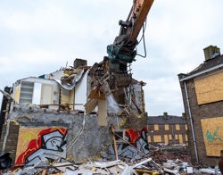 De afgelopen maanden zagen de lege, dichtgespijkerde woningen aan de Charlotte de Bourbonstraat en omliggende straten er troosteloos uit. De voorbereidingen voor de sloop van de woningen werden door Trivire getroffen: alle bewoners zijn verhuisd inclusief de aanwezige huismussen, egels en vleermuizen, de leidingen voor gas, water en elektra zijn verwijderd net als het aanwezige asbest en het dak. Op maandag 17 januari kon de echte sloop dan ook beginnen!