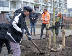 Verschillende buurtbewoners gaven gehoor aan de oproep van Trivire. Woensdag 11 december 2024 ontvingen zij met trots een naambordje die bij ‘hun’ boom wordt geplaatst. Boswachter Jonathan Leeuwis was vanuit Staatsbosbeer aanwezig bij de feestelijke bekendmaking, waar de namen van de bomen werden onthuld. Hij informeerde de aanwezige buurtbewoners over vogels en andere kleine dieren, voor wie de aanwezigheid van bomen in buurten en wijken belangrijk is. Na de bekendmaking van de geselecteerde namen, plantten buurtbewoners met elkaar één van de eerste bomen in de fonkelnieuwe tuin in Sterrenburg. “Door het geven van een naam aan bomen, worden gewone bomen bijzonder voor mensen”, aldus Wieteke Hassing van Trivire.