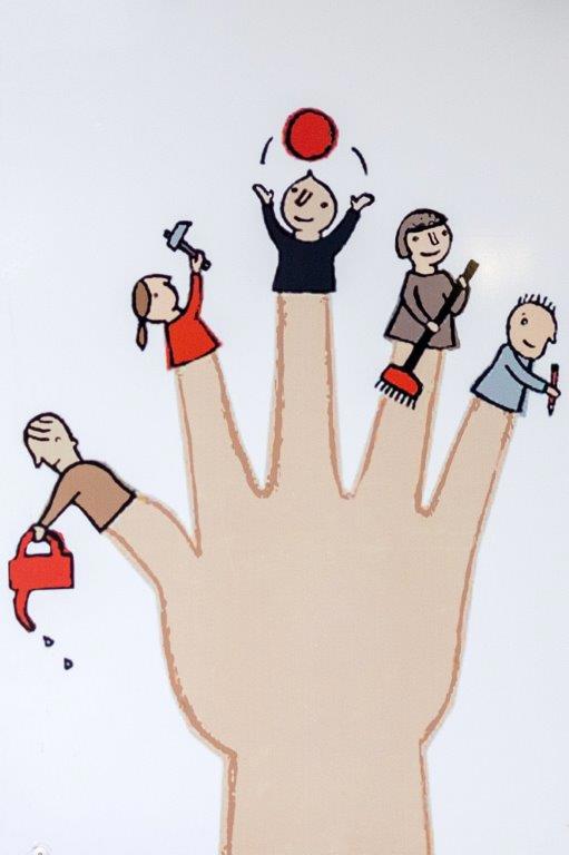 Wat als eerste opvalt als je bij Stichting Helpende Handen, gevestigd in het gebouw Callisto in de wijk Sterrenburg te Dordrecht, binnenstapt, zijn de kleurrijke kunstwerkjes aan de muur. Achter elk kunstwerk schuilt een jonge student die zijn of haar tijd heeft ingezet voor hen die een ‘Helpende Hand’ nodig hebben. Dit is de kern van wat Stichting Helpende Handen Nederland doet: door inzet van stagiaires en participatiedeelnemers helpen zij wijkbewoners met een scala aan hulp- en zorgvragen. We spraken met Femke Spruit, oprichtster en directeur bestuurder van Stichting Helpende Handen. En met Ingrid Luijten, coördinator in de wijk Sterrenburg, over het werk van ‘Helpende Handen’ en de samenwerking met Trivire.