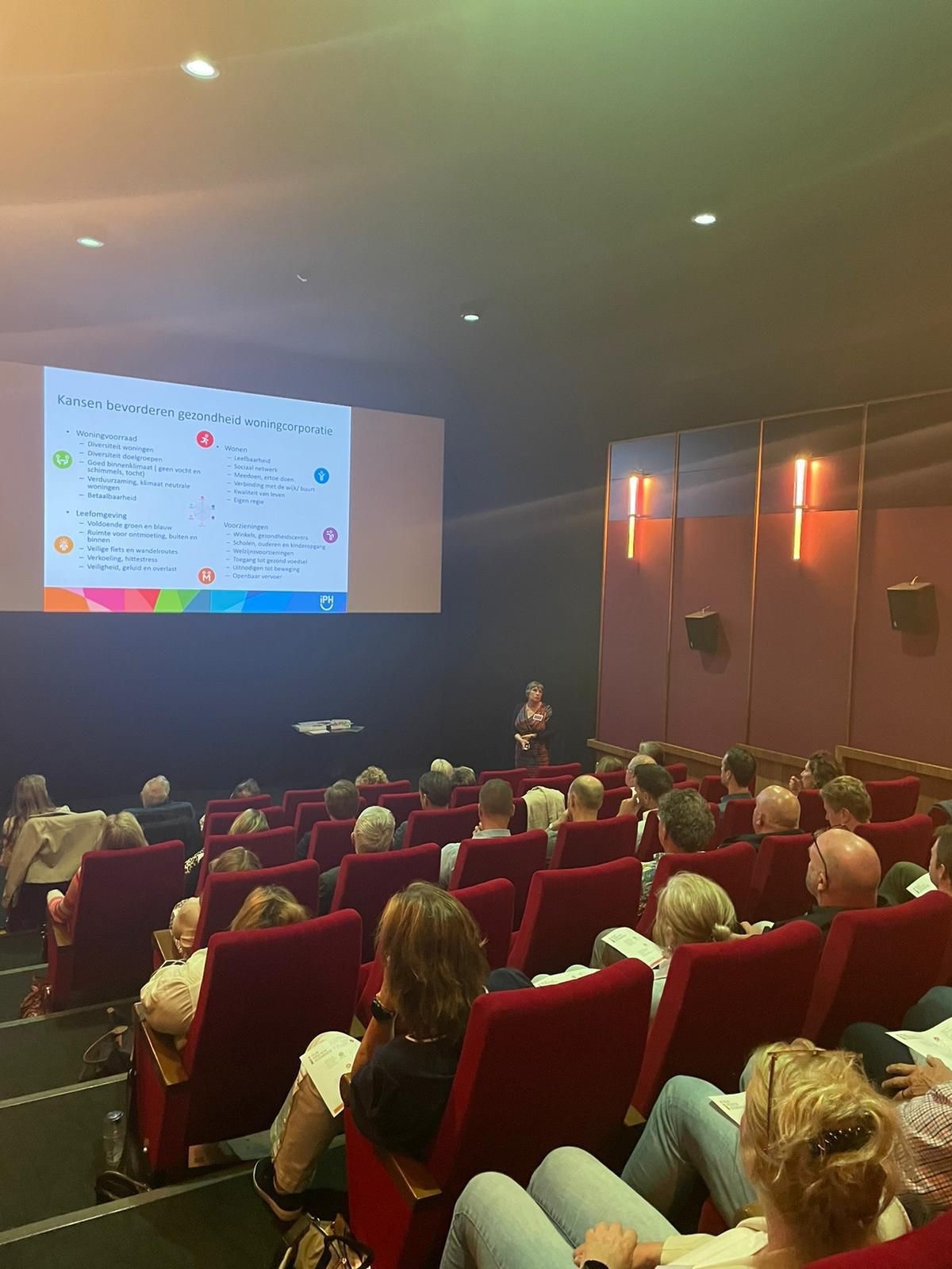 De tweede spreker van de middag was Mieke Reynen. Zij nam ons mee in het onderwerp ‘Positieve Gezondheid’. Haar verhaal vertelde ons dat we voorbij de ziekte van mensen moeten kijken. Dat ieder mens kwaliteiten heeft die benut kunnen worden, wat goed is voor de samenleving én de persoon in kwestie. Ook stond zij stil bij wat wij in onze sector kunnen doen om een gezonde leefomgeving te creëren voor onze huurders. Mieke’s bijdrage was ook meteen haar laatste cadeautje aan Trivire, want op diezelfde dag zwaaide zij af als lid van de Raad van Commissarissen van Trivire. Met een mooie bos bloemen hebben we Mieke bedankt voor haar jarenlange inzet voor onze organisatie.